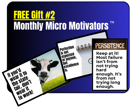 Because motivation is such a critical part of all well-managed organizations, you’ll also get a new Micro Motivator™ in each Monthly Motivation Box™.